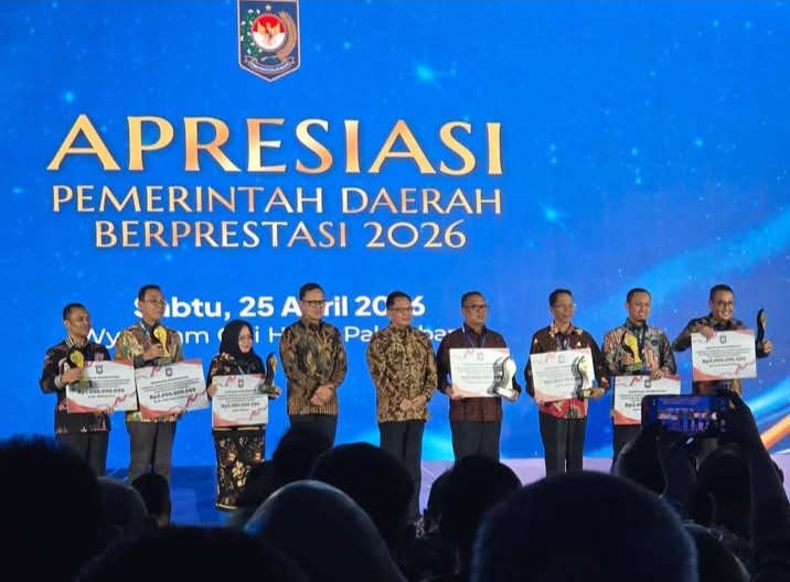 Penghargaan tersebut diserahkan pada Sabtu (25/04/2026) di Wyndham Opi Hotel Palembang. Bupati Mesuji, Hj, Elfianah , menerima langsung penghargaan dari Menteri Dalam Negeri Bima Arya Sugiarto.