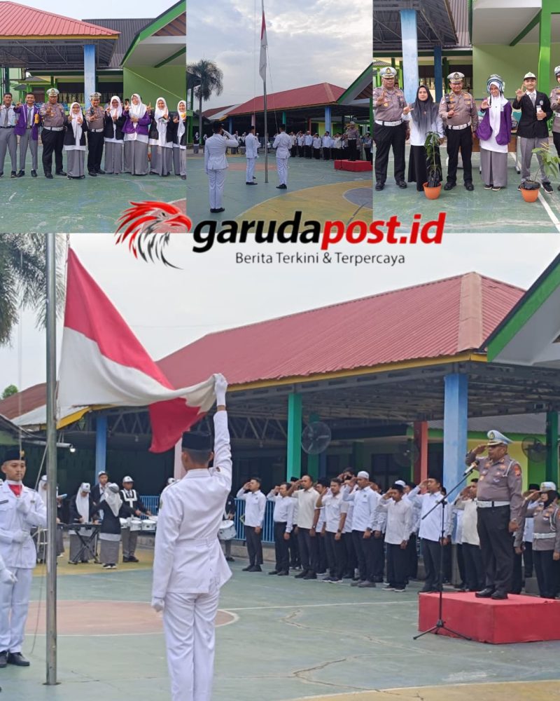 Kegiatan tersebut dipimpin langsung oleh Kasubdit Kamsel Ditlantas Polda Riau, AKBP Dasril, S.Pd., M.M., yang bertindak sebagai pembina upacara. Upacara diikuti oleh 124 guru dan 1.087 siswa, serta didukung oleh personel Subdit Kamsel Ditlantas Polda Riau.