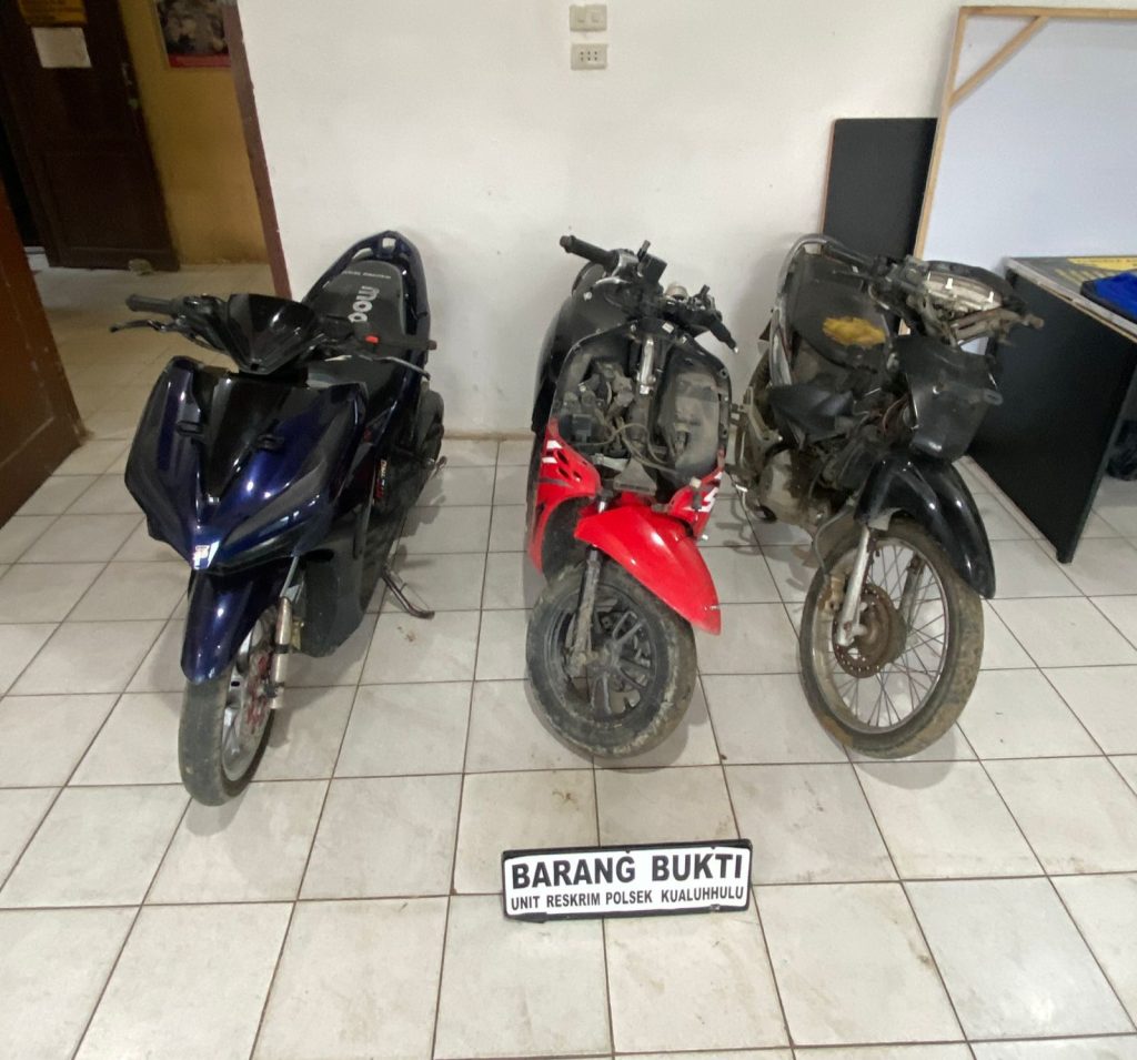 Teman-teman saksi sempat kejar. Komplotan kabur tunggang langgang, tinggalkan 3 unit sepeda motor Honda: Supra X 125, Scoopy, dan Vario.