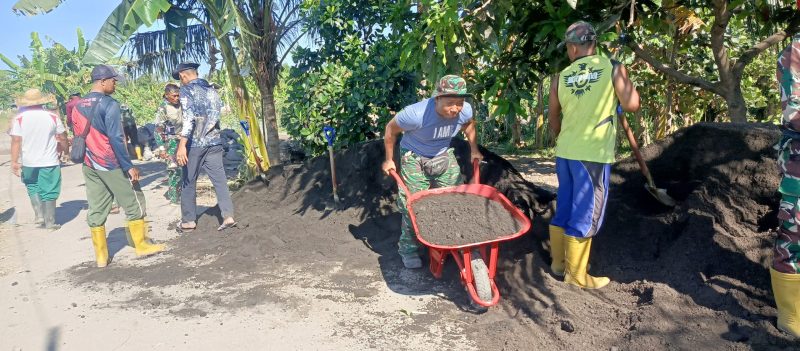Dengan Semangat Tanpa Lelah, Satgas TMMD dan Masyarakat Bahu-Membahu Bangun Akses Jalan Desa