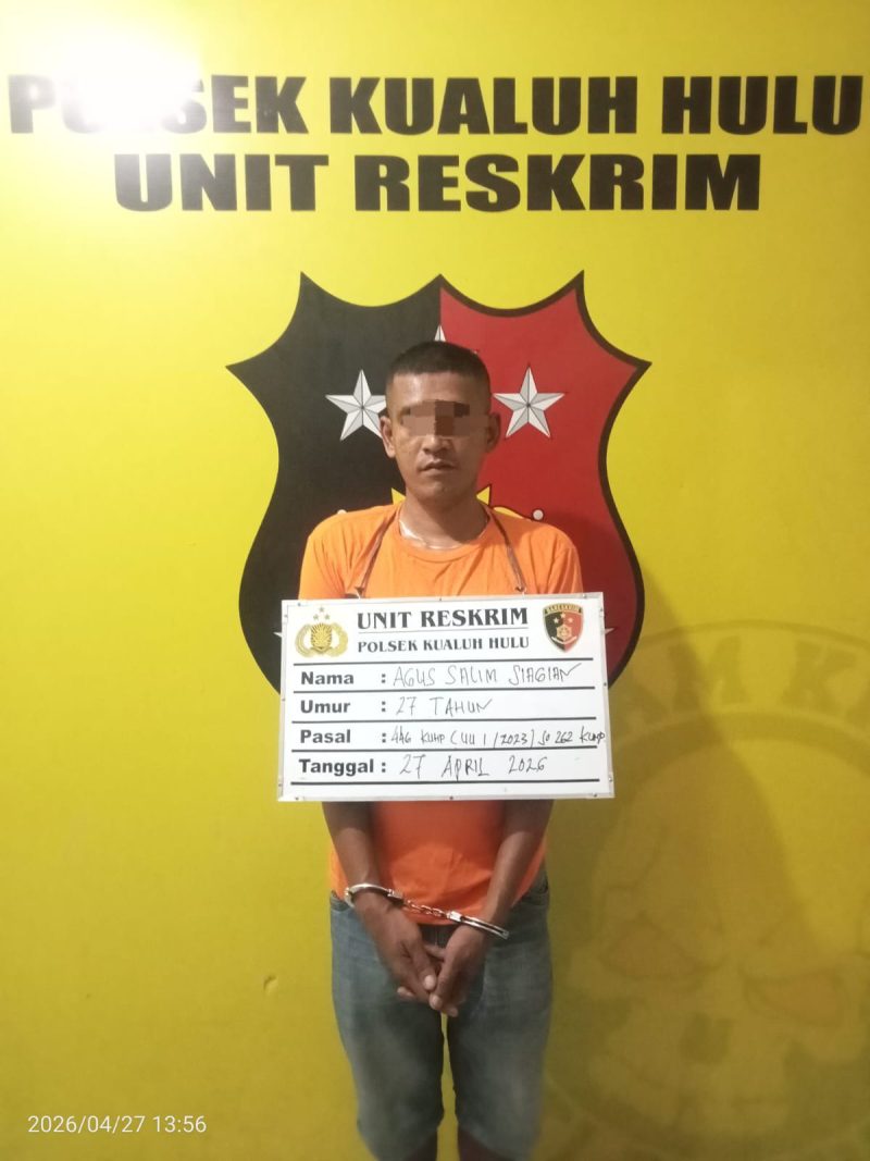 Tersangka yang diamankan adalah AGUS SALIM SIAGIAN, 27 tahun, warga Lingkungan XII Atas, Kelurahan Gunting Saga, Kecamatan Kualuh Hulu. Ia ditangkap Minggu, 26 April 2026 sekira pukul 17.30 WIB di Dusun V Desa Perkebunan Membang Muda, tak jauh dari lokasi kejadian.