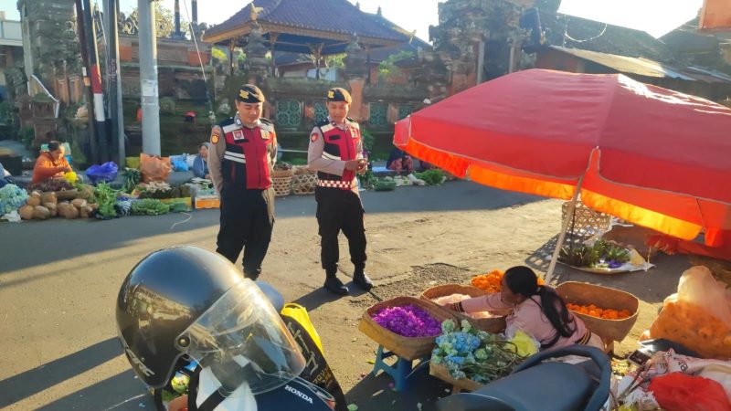 Bangli – Dalam rangka menjaga situasi kamtibmas tetap aman dan kondusif, Satuan Samapta Polres Bangli melaksanakan patroli dialogis di kawasan Pasar Kidul Bangli pada Selasa, 15 April 2026, pukul 07.00 WITA.