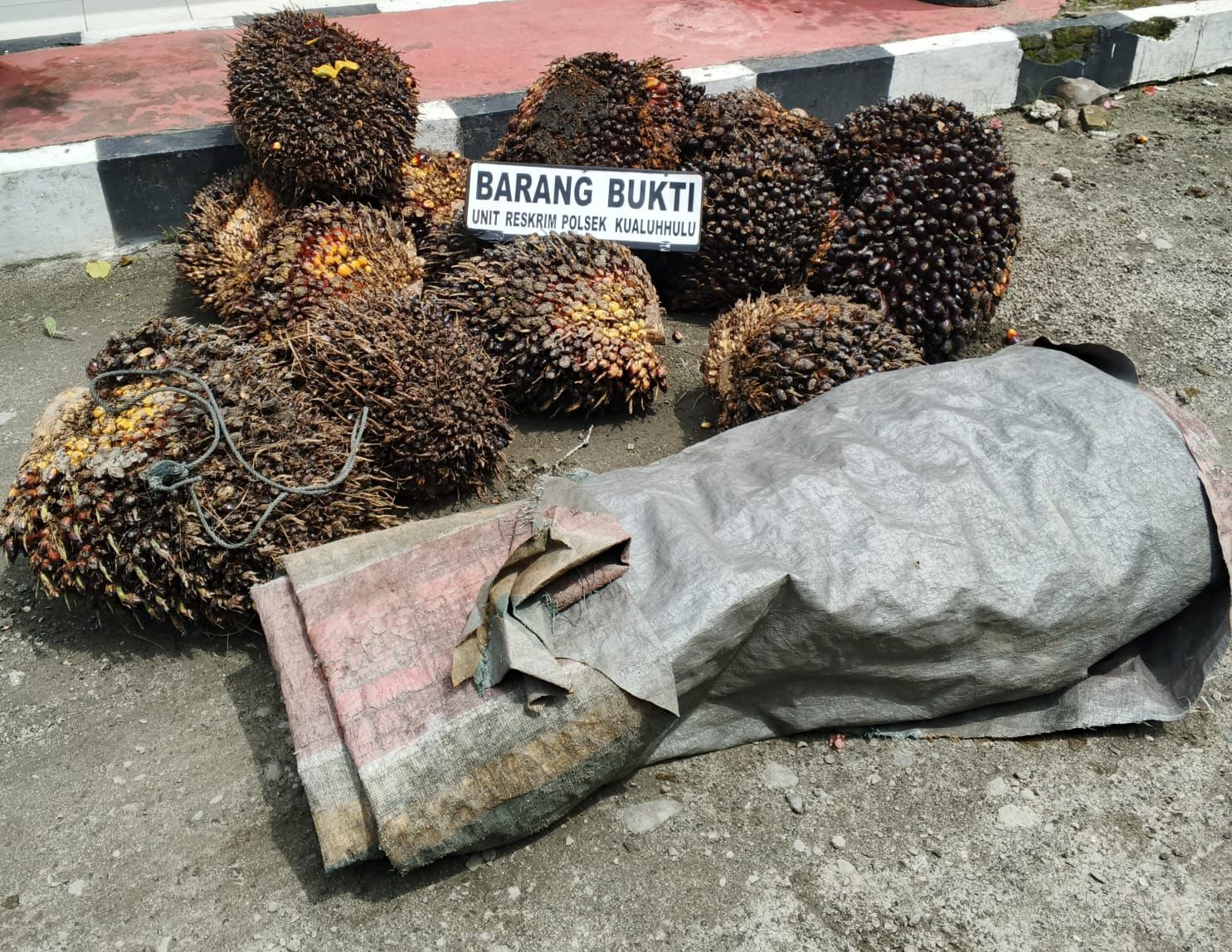 Polisi mengamankan barang bukti berupa 1 unit Honda Supra tanpa plat, 16 janjang kelapa sawit, dan 1 tenda dalam keadaan koyak. FP kini ditahan di Mapolsek Kualuh Hulu dan dijerat Pasal 363 KUHP tentang Pencurian dengan Pemberatan, sementara tiga pelaku lain masih diburu. (Redaksi)