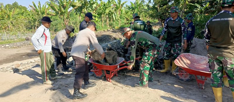 Pengerjaan talud melibatkan personel TNI bersama masyarakat setempat yang bekerja secara gotong royong setiap harinya. Semangat kebersamaan dan kekompakan menjadi faktor utama dalam percepatan pembangunan di lokasi TMMD.