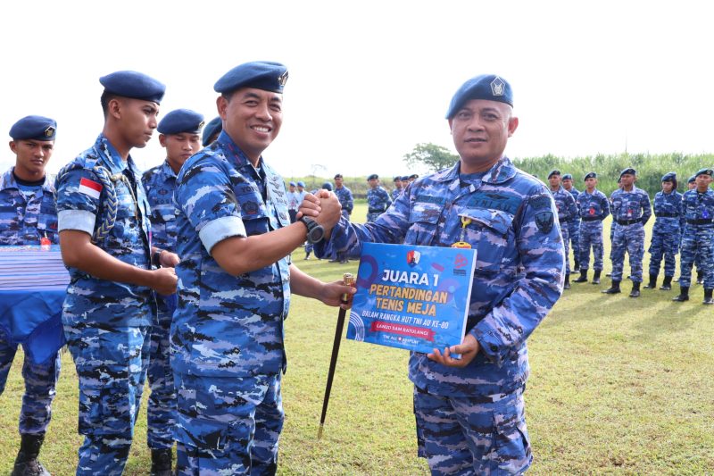 Garudapost.id-Manado/Danlanud Sam Ratulangi Marsma TNI Yoyon Kuscahyono, S.Sos., menyerahkan hadiah Lomba Antar Satker dalam rangka HUT Ke-80 TNI Angkatan Udara di Lapangan Dirgantara Lanud Sam Ratulangi, Manado. Senin (20/04/2026).