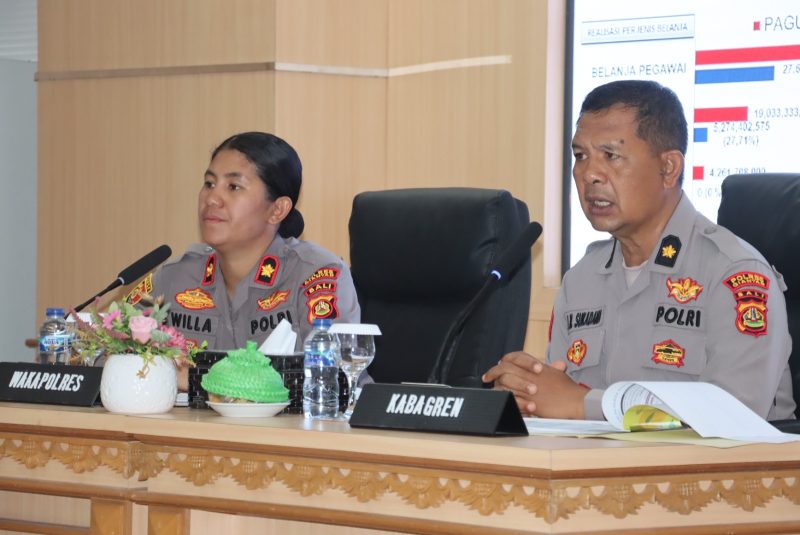 Kegiatan dilanjutkan dengan paparan dari Kabagren Polres Gianyar terkait realisasi anggaran tahun 2026. Secara keseluruhan, rangkaian kegiatan berlangsung dengan aman, tertib, dan lancar.